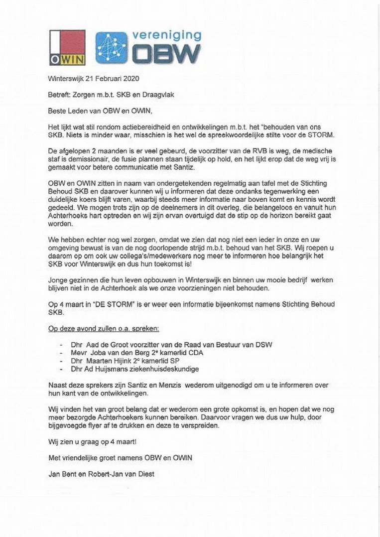 We maken ons grote zorgen over de toekomst SKB: welke functies blijven en wat als de acute zorg uit Winterswijk verdwijnt? Zaken die ons, inwoners, bedrijven en instellingen diep raken! Een gevoel dat we bij de Cliëntenraad erg hebben gemist de afgelopen tijd.